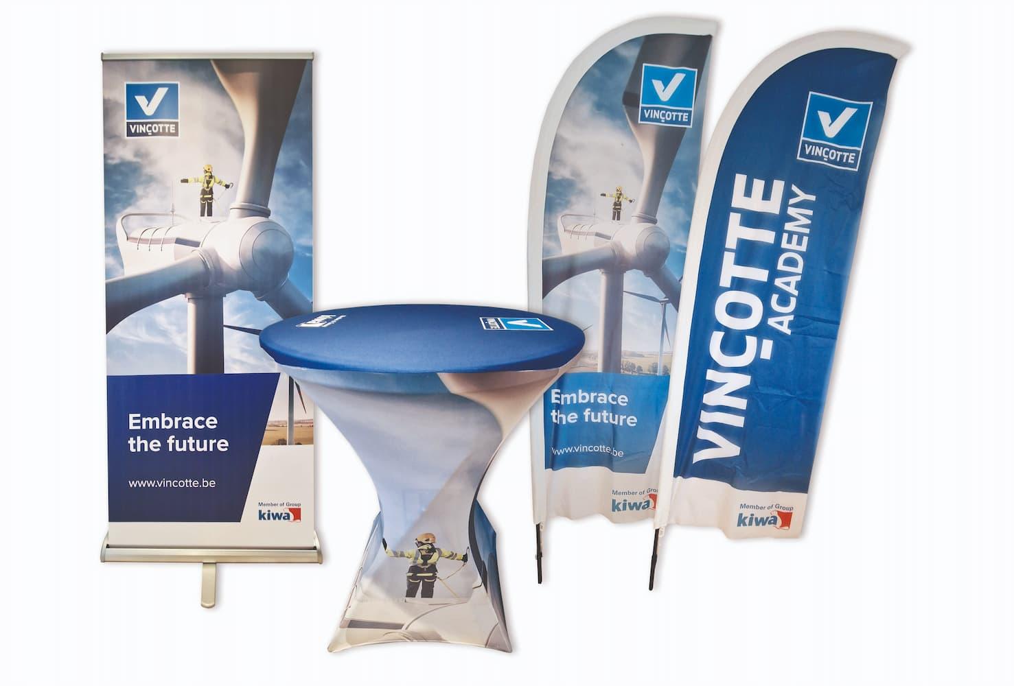 Sta je op een beurs? Met een unieke beursstand spring je eruit bij je potentiële klanten. Wij integreren je huisstijl op al je communicatiedragers, beursstanden, mailings, gadgets en overal waar jij prominent aanwezig wil zijn. Elke communicatiedrager is verschillend en wordt helemaal op maat van je bedrijf ontworpen.